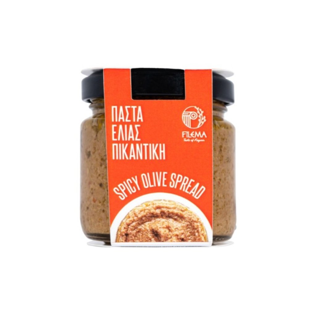Složení: zelené olivy, slunečnicový olej, sůl, pálivý paprikový prášek, regulátory kyselosti: kyselina citronová-akorbová, kyselina mléčná, přírodní konzervant kyselina sorbová. Vyrobeno a baleno v Řecku.