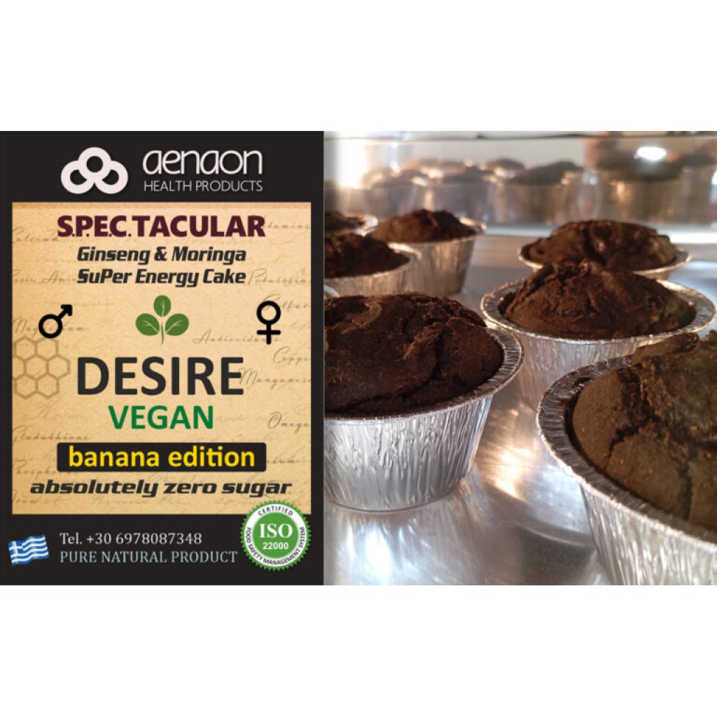 Pro milovníky veganské čokolády **„DESIRE VEGAN“** kombinuje bohatou chuť čokolády s vitalitou ženšenu Panax. Tato varianta dortu Desire, vyrobená z veganské čokolády, obsahuje všechny naše oblíbené ingredience – moringu, karobový sirup, banán a olivový olej – obohacené o revitalizační sílu ženšenu.