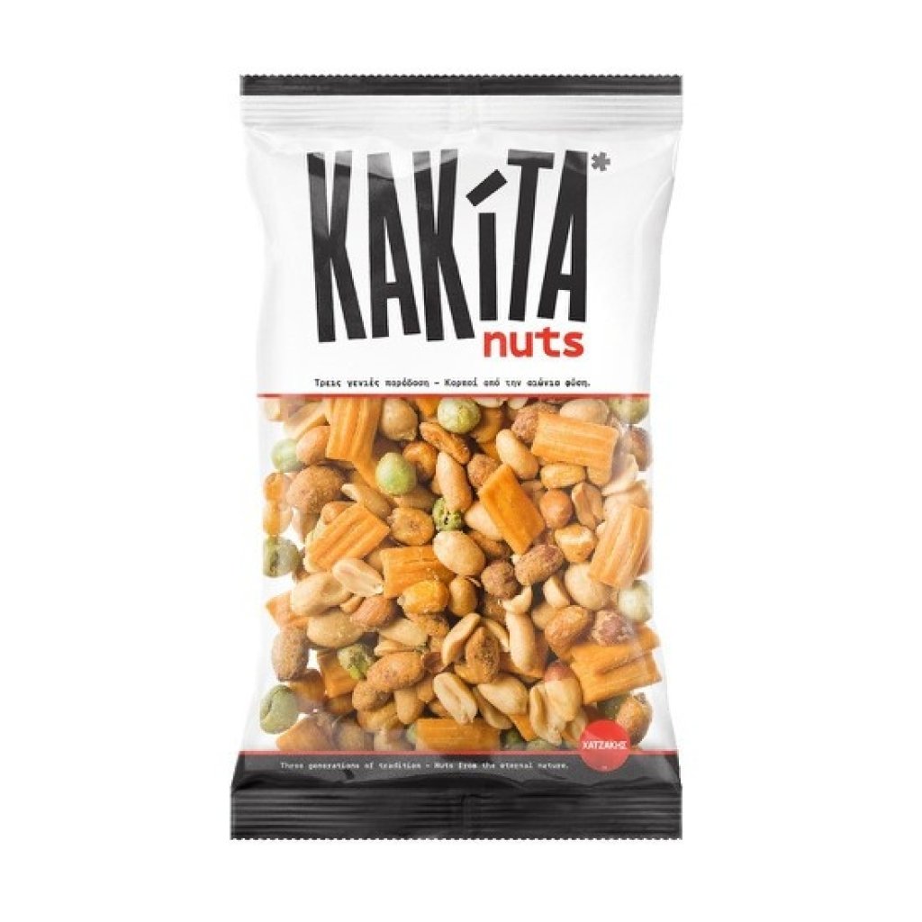 Směs sušeného hrachu, fazolí, arašídů, krevetových krekrů. Nutriční hodnoty na 100g: energie 2401kJ/574kcal | tuky 49g | sacharidy 15g | bílkoviny 30g